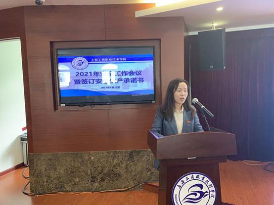 签约仪式上,部门代表学工部(处)、大唐信息技术学院签署了《上海工商职业技术学院2021年安全生产承诺书》。