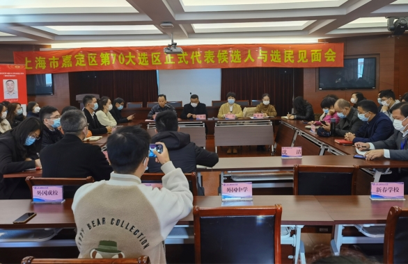11月9日上午,根据区选举委员会的统一部署,学校在嘉定校区北楼报告厅召开区人大正式代表候选人与选民代表见面会。本选区3名区人大正式代表候选人以及10家选举单位40位选民代表出席会议,校党委书记、选举工作组组长金伟国主持会议。
