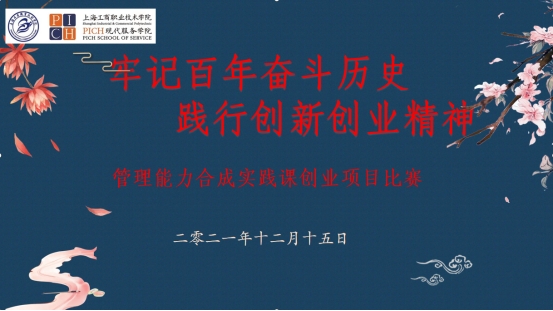 为培养学生创新精神和提高创业实践能力,进一步增强学生创新创业自信和激发创新创业热情。2021年12月15日,PICH现代服务学院在综合楼二楼报告厅举办管理能力合成实践课创业项目比赛活动。出席比赛活动的评委有英格尔检测技术服务(上海)有限公司副总经理、中国国际“互联网+”大学生创新创业大赛项目评审专家、连续四年被聘为上海工商职业技术学院大学生创业导师的程星星,党支部书记、副院长朱燕,团总支书记陈嘉玲,“彼途”创业工作室负责人伊晓静,专业老师余霁航。餐饮203李耀杰和空乘211汤音璇担任主持。