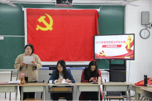 为进一步强化教师党员党性观念、规范组织纪律、宏扬党内正气、纯洁党员队伍、发扬党内民主,2021年12月31日中午,教育学院党支部在一教119召开民主评议党员大会。会议由教育学院党支部书记许慧芳主持,学校党委副书记张中美以及教育学院党支部全体党员参加了会议。